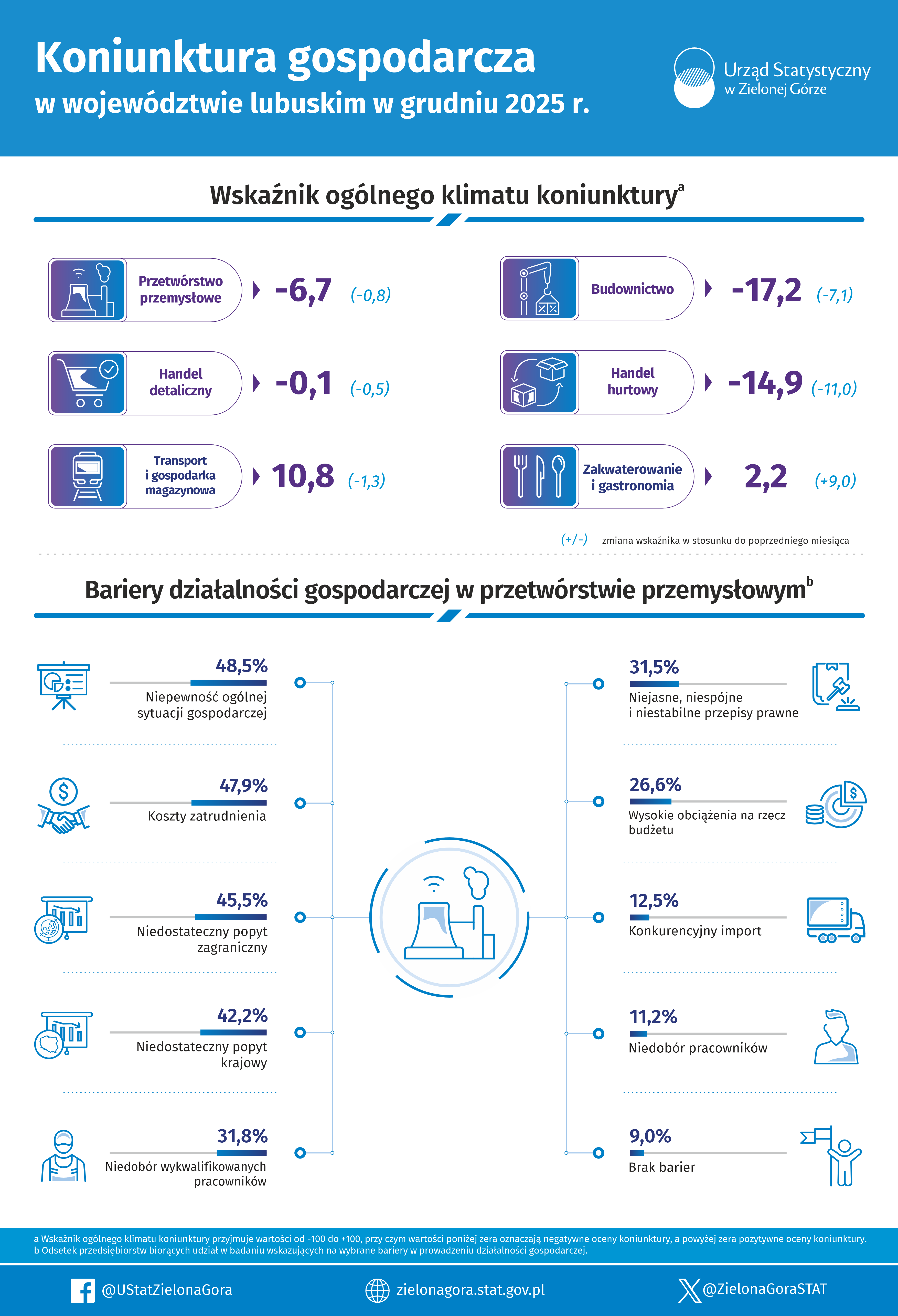 Koniunktura gospodarcza w województwie lubuskim w grudniu 2025 r. - INFOGRAFIKA A A A 30.12.2025 Pliki do pobrania Opis alternatywny - Koniunktura gospodarcza w województwie lubuskim w grudniu 2025 r. - INFOGRAFIKA 0.06 MB Koniunktura gospodarcza w województwie lubuskim w grudniu 2025 r. - INFOGRAFIKA 1.69 MB Koniunktura gospodarcza w województwie lubuskim w grudniu 2025 r. - INFOGRAFIKA 0.01 MB Archiwum 2025 Koniunktura gospodarcza w województwie lubuskim w listopadzie 2025 r. - INFOGRAFIKA Koniunktura gospodarcza w województwie lubuskim w październiku 2025 r. - INFOGRAFIKA Koniunktura gospodarcza w województwie lubuskim we wrześniu 2025 r. - INFOGRAFIKA Koniunktura gospodarcza w województwie lubuskim w sierpniu 2025 r. - INFOGRAFIKA Koniunktura gospodarcza w województwie lubuskim w lipcu 2025 r. - INFOGRAFIKA Koniunktura gospodarcza w województwie lubuskim w czerwcu 2025 r. - INFOGRAFIKA Koniunktura gospodarcza w województwie lubuskim w maju 2025 r. - INFOGRAFIKA Koniunktura gospodarcza w województwie lubuskim w kwietniu 2025 r. - INFOGRAFIKA Koniunktura gospodarcza w województwie lubuskim w marcu 2025 r. - INFOGRAFIKA Koniunktura gospodarcza w województwie lubuskim w lutym 2025 r. - INFOGRAFIKA