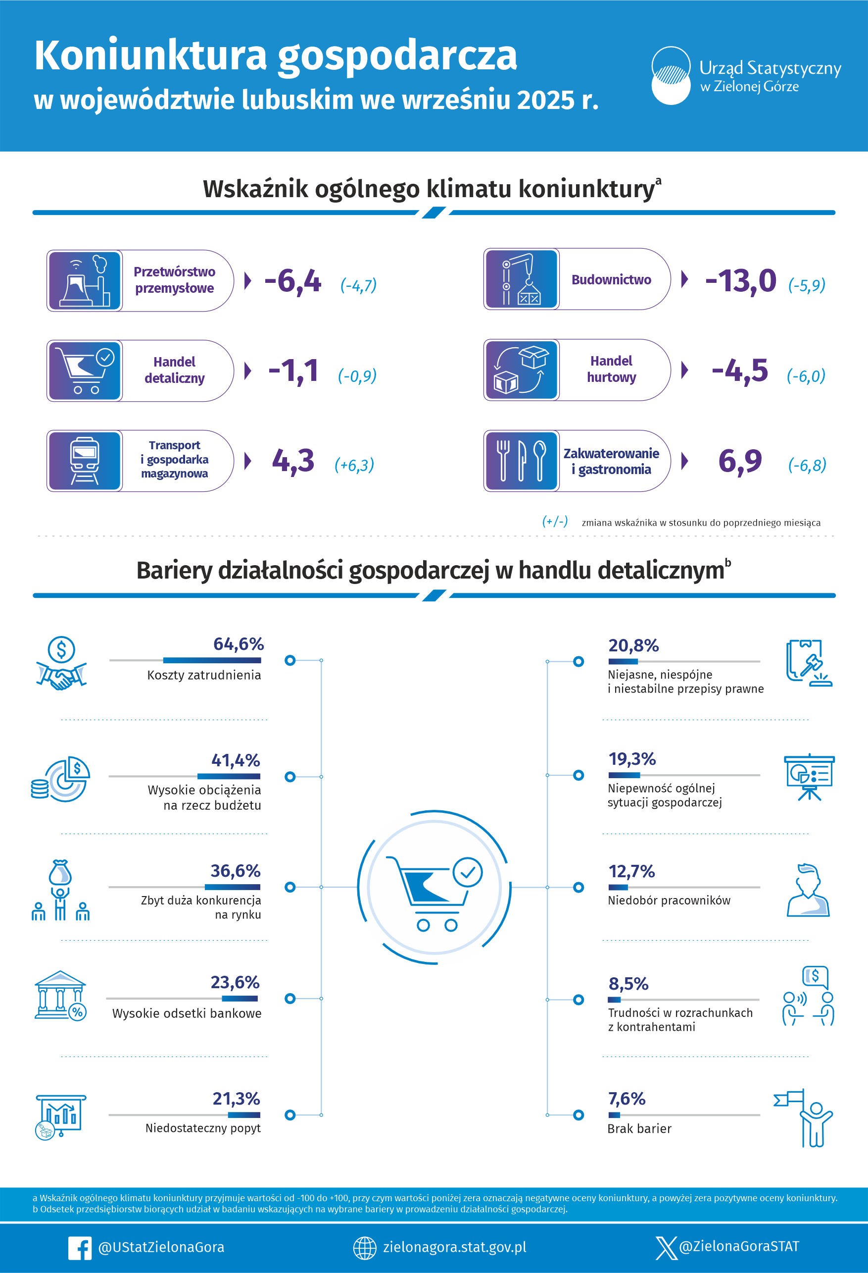 Koniunktura gospodarcza w województwie lubuskim we wrześniu 2025 r. - INFOGRAFIKA A A A 29.09.2025 Pliki do pobrania Opis alternatywny - Koniunktura gospodarcza w województwie lubuskim we wrześniu 2025 r. - INFOGRAFIKA 0.05 MB Koniunktura gospodarcza w województwie lubuskim we wrześniu 2025 r. - INFOGRAFIKA 1.66 MB Koniunktura gospodarcza w województwie lubuskim we wrześniu 2025 r. - INFOGRAFIKA 0.01 MB Archiwum 2025 Koniunktura gospodarcza w województwie lubuskim w sierpniu 2025 r. - INFOGRAFIKA Koniunktura gospodarcza w województwie lubuskim w lipcu 2025 r. - INFOGRAFIKA Koniunktura gospodarcza w województwie lubuskim w czerwcu 2025 r. - INFOGRAFIKA Koniunktura gospodarcza w województwie lubuskim w maju 2025 r. - INFOGRAFIKA Koniunktura gospodarcza w województwie lubuskim w kwietniu 2025 r. - INFOGRAFIKA Koniunktura gospodarcza w województwie lubuskim w marcu 2025 r. - INFOGRAFIKA Koniunktura gospodarcza w województwie lubuskim w lutym 2025 r. - INFOGRAFIKA Koniunktura gospodarcza w województwie lubuskim w styczniu 2025 r. - INFOGRAFIKA