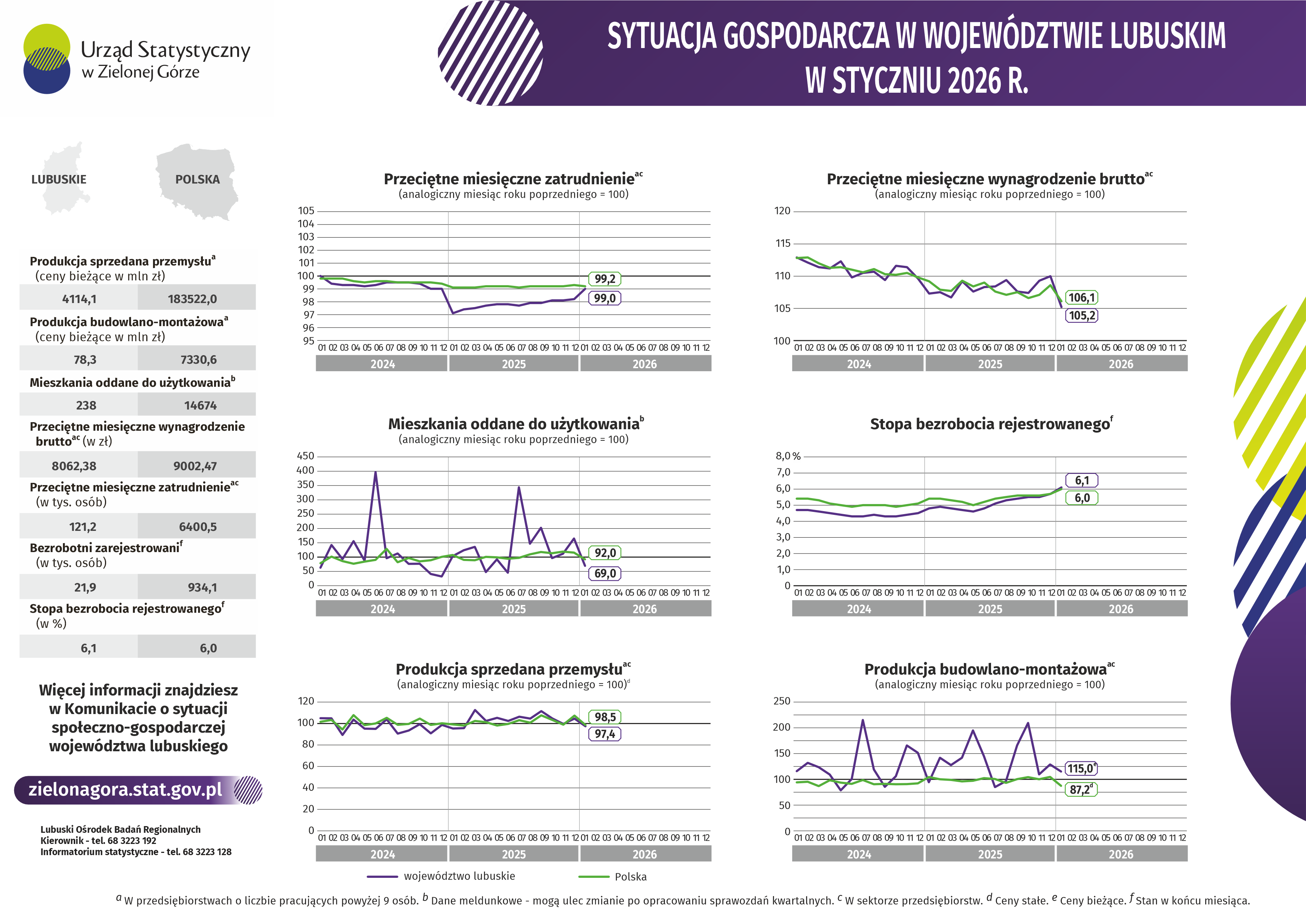 Sytuacja gospodarcza w województwie lubuskim w styczniu 2026 r. - INFOGRAFIKA A A A 26.02.2026 Pliki do pobrania Opis alternatywny - Sytuacja gospodarcza w województwie lubuskim w styczniu 2026 r. - INFOGRAFIKA 0.08 MB Sytuacja gospodarcza w województwie lubuskim w styczniu 2026 r. - INFOGRAFIKA 2.42 MB Sytuacja gospodarcza w województwie lubuskim w styczniu 2026 r. - INFOGRAFIKA 0.01 MB Archiwum 2025 Sytuacja gospodarcza w województwie lubuskim w grudniu 2025 r. - INFOGRAFIKA Sytuacja gospodarcza w województwie lubuskim w listopadzie 2025 r. -INFOGRAFIKA Sytuacja gospodarcza w województwie lubuskim w październiku 2025 r. -INFOGRAFIKA Sytuacja gospodarcza w województwie lubuskim we wrześniu 2025 r. -INFOGRAFIKA Sytuacja gospodarcza w województwie lubuskim w sierpniu 2025 r. -INFOGRAFIKA Sytuacja gospodarcza w województwie lubuskim w lipcu 2025 r. -INFOGRAFIKA Sytuacja gospodarcza w województwie lubuskim w czerwcu 2025 r. -INFOGRAFIKA Sytuacja gospodarcza w województwie lubuskim w maju 2025 r. -INFOGRAFIKA Sytuacja gospodarcza w województwie lubuskim w kwietniu 2025 r. - INFOGRAFIKA Sytuacja gospodarcza w województwie lubuskim w marcu 2025 r. - INFOGRAFIKA Sytuacja gospodarcza w województwie lubuskim w lutym 2025 r. - INFOGRAFIKA